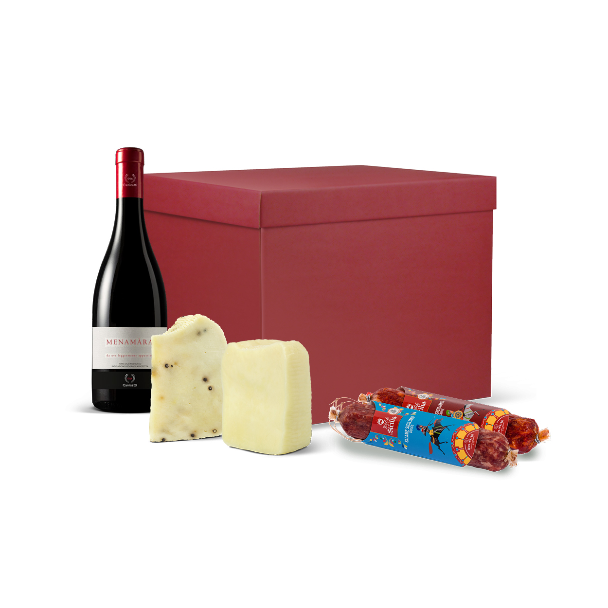 Il cesto ” Sikania” , contiene alcuni tra i salumi ed i formaggi siciliani più autentici, realizzati artigianalmente con suini e latte di pecora siciliani. I nostri salumi, provengono da uno degli artigiani siciliani più affermati, il “Master Butcher” Gianni Giardina, già componente ed istruttore della nazionale italiana macellai, recentemente premiato ai campionati del mondo con il titolo di Campione del mondo nella categoria disosso.