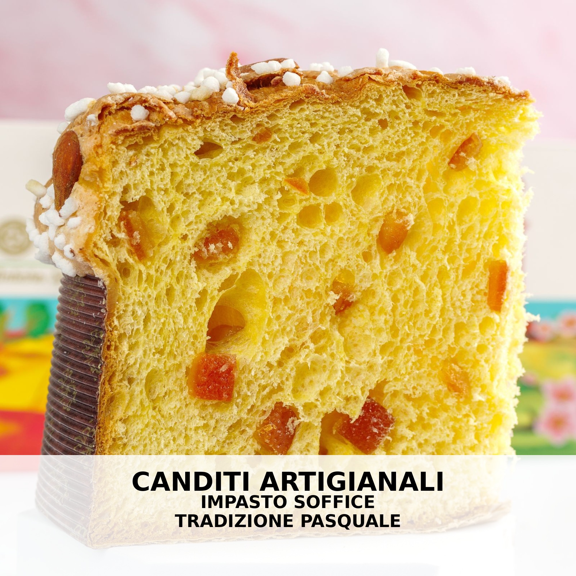 L’impasto soffice e fragrante è arricchito da canditi artigianali selezionati da produttori locali, che preservano profumi e sapori autentici degli agrumi. La glassa zuccherata con mandorle siciliane completa il dolce con una piacevole croccantezza.