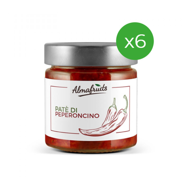 Contenuto/Peso: 6 vasetti in vetro, ognuno con 180 grammi di patè di peperoncino