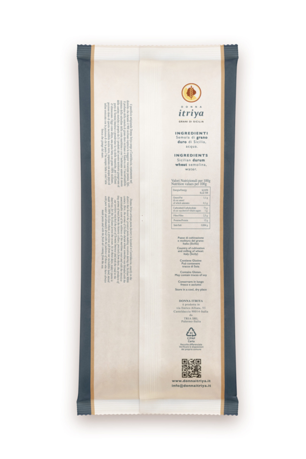 Le Linguine Grani Antichi Bio Donna Itriya rappresentano un viaggio nel cuore della tradizione siciliana. Realizzate esclusivamente con grani autoctoni come Russello e Perciasacchi, provenienti da agricoltura biologica certificata, racchiudono tutto il sapore autentico della Sicilia.