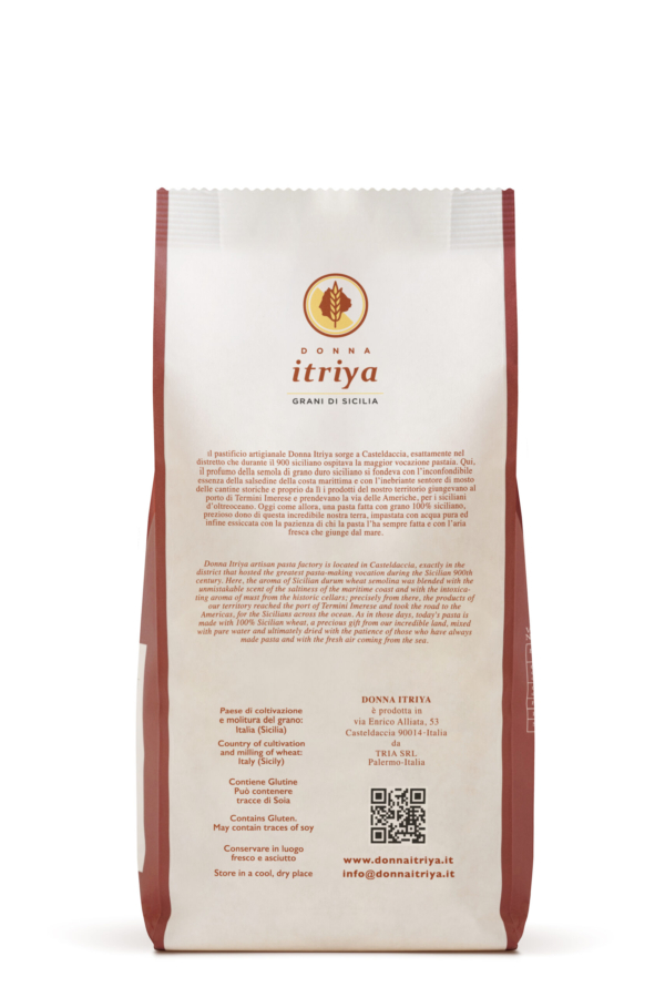 I Maccheroni Rigati Donna Itriya sono l’emblema della pasta siciliana fatta secondo metodo artigianale. La trafilatura al bronzo regala la caratteristica superficie ruvida e porosa, perfetta per trattenere sughi ricchi e condimenti corposi.