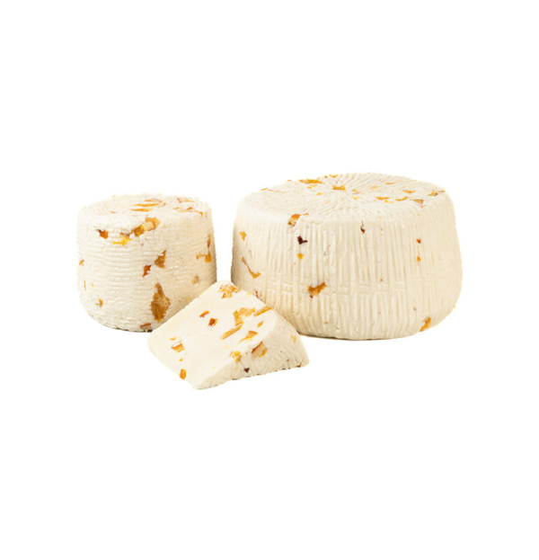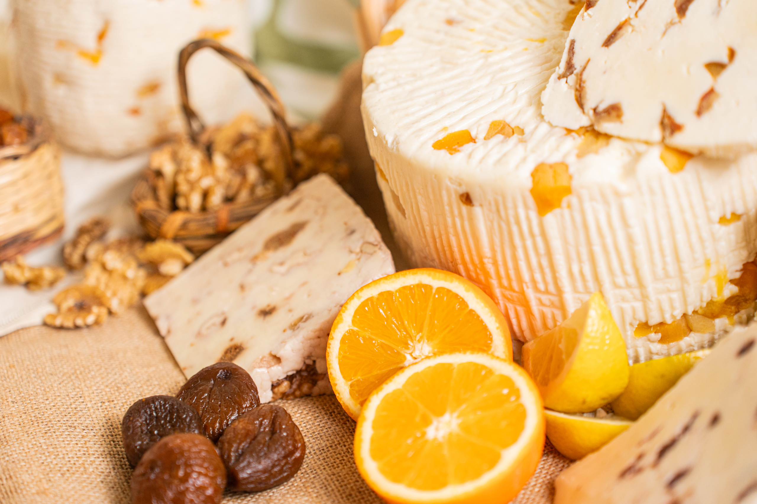 Il Canestrato con Arancia è un formaggio siciliano a pasta morbida, arricchito con pezzi di arancia disidratata che donano un gusto dolce e agrumato unico. Perfetto da gustare come dessert o per arricchire taglieri tipici con un tocco originale